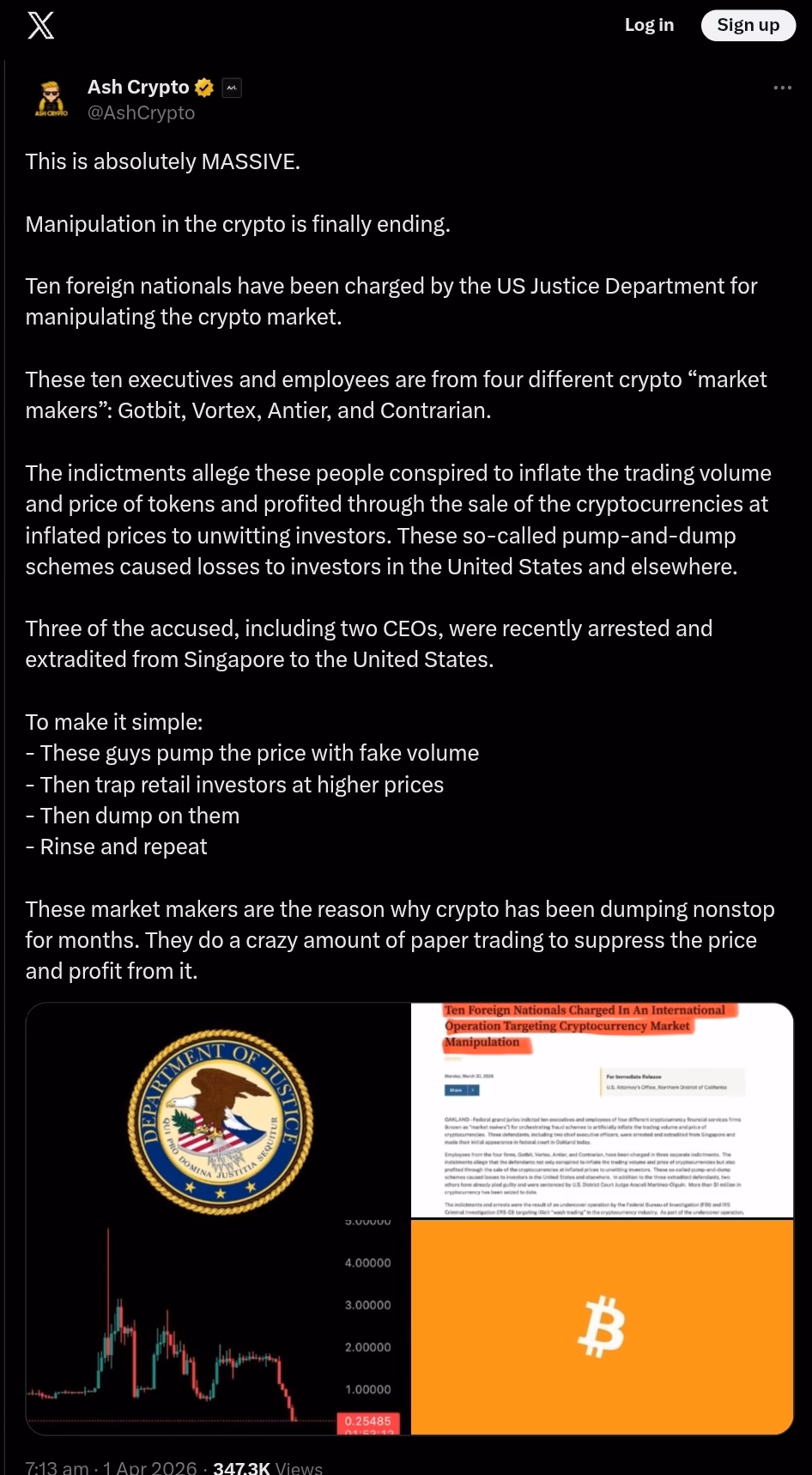 A viral reaction from Ash Crypto framed the case as the beginning of the end for manipulation. The reality is more complicated.
