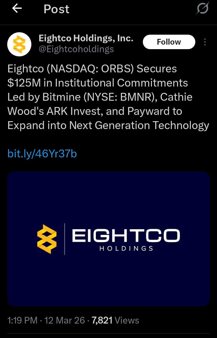 Eightco has also partnered with BitMine to support a Worldcoin-focused treasury initiative, aiming to use blockchain-based identity tools and digital assets in enterprise authentication systems.