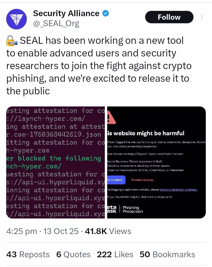 SEAL emphasized that the phishing defense network will enable verifiable and transparent reporting of malicious sites, helping wallets and users identify and block new scams in real time.